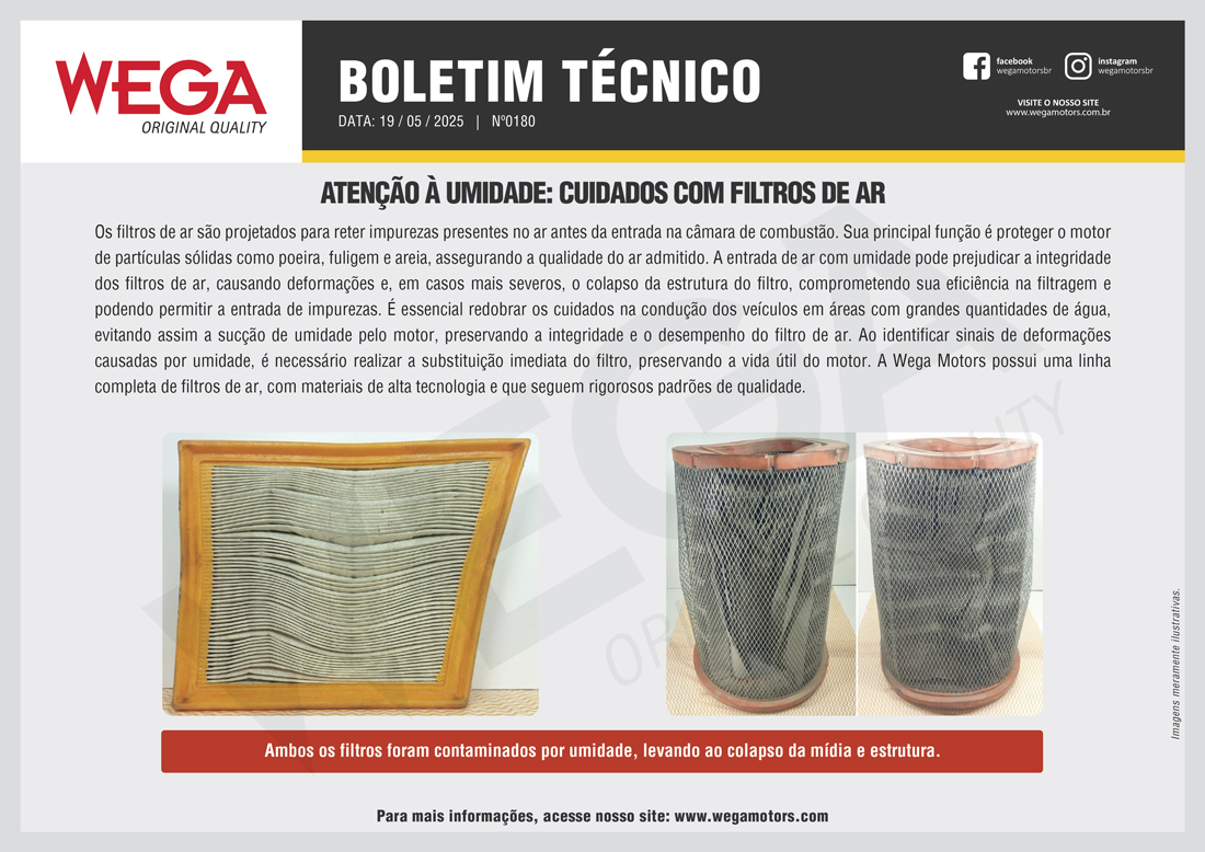View Larger Image nº0180 – Boletim técnico – Atenção à Umidade Cuidados com Filtros de Ar Por WEGA MOTORS BR|2025-12-19T13:01:33+00:0019 de dezembro de 2025|0 Comentários Compartilhe este Post! FacebookTwitterRedditLinkedInWhatsAppTumblrPinterestVkXingE-mail